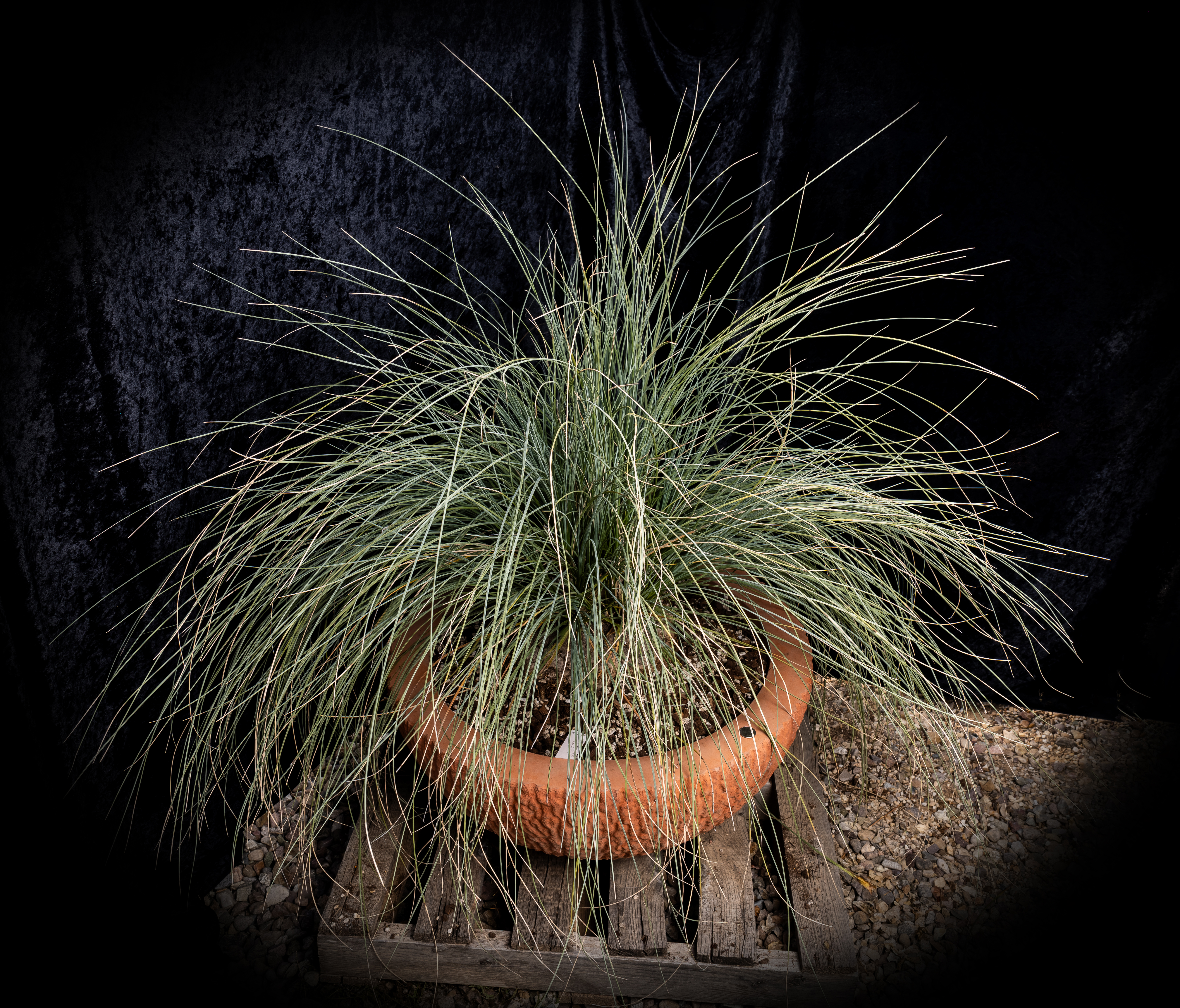Calibanus Hookeri is an unusual plant. The genus is named after Caliban, the antagonist in Shakespeare’s The Tempest. Shakespeare described Caliban as a feral, misshapen whelp of the devil. However beauty is in the eye of the beholder and what is grotesque to some may induce awe and wonderment in others. At first glance of Calibanus in habitat, one might think they’re gazing upon tufts of course grass. Look closer and you may notice this “grass” sprouts from a tough, fissured, woody sub–surface tuber that some say can grow to be the size of a Volkswagon Bug. To highlight these features we have exposed this woody codex and planted the Calibanus in a Kornegay pot. This pot is artfully designed with a rough exterior that mirrors the texture of the plant. Calibanus is low-maintenance and long-lived. It will provide your patio or garden with a unique and exotic focal point for years to come.