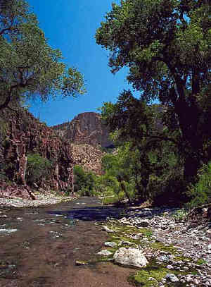 Riparian Communities are not biomes. Though they could be considered isolated ribbons of deciduous forest, they are better viewed as a unique habitat type. Several perennial and intermittent rivers flow through our region, the biggest being the Colorado. Desert ecologists include the vegetation in washes (arroyos) as "dry riparian" habitats. Though they may carry water only a few days a year or even less, they share most of their defining characteristics with traditional "wet" riparian habitats. They are chronically disturbed, unstable sites where water and nutrients are harvested and concentrated from larger areas (watersheds). Like wet rivers, washes are corridors for dispersal of plants and animals that need more water than the surrounding habitat.
