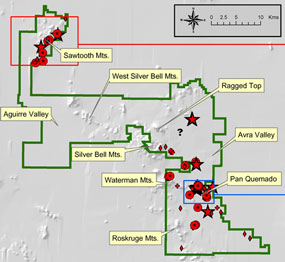 There are numerous buffelgrass sites in Ironwood Forest National Monument; they are concentrated in the Pan Quemado and Sawtooth mountains. It is most common on south-facing rocky slopes and is rare on bajadas and valley floors. See more discussion in the fire section.